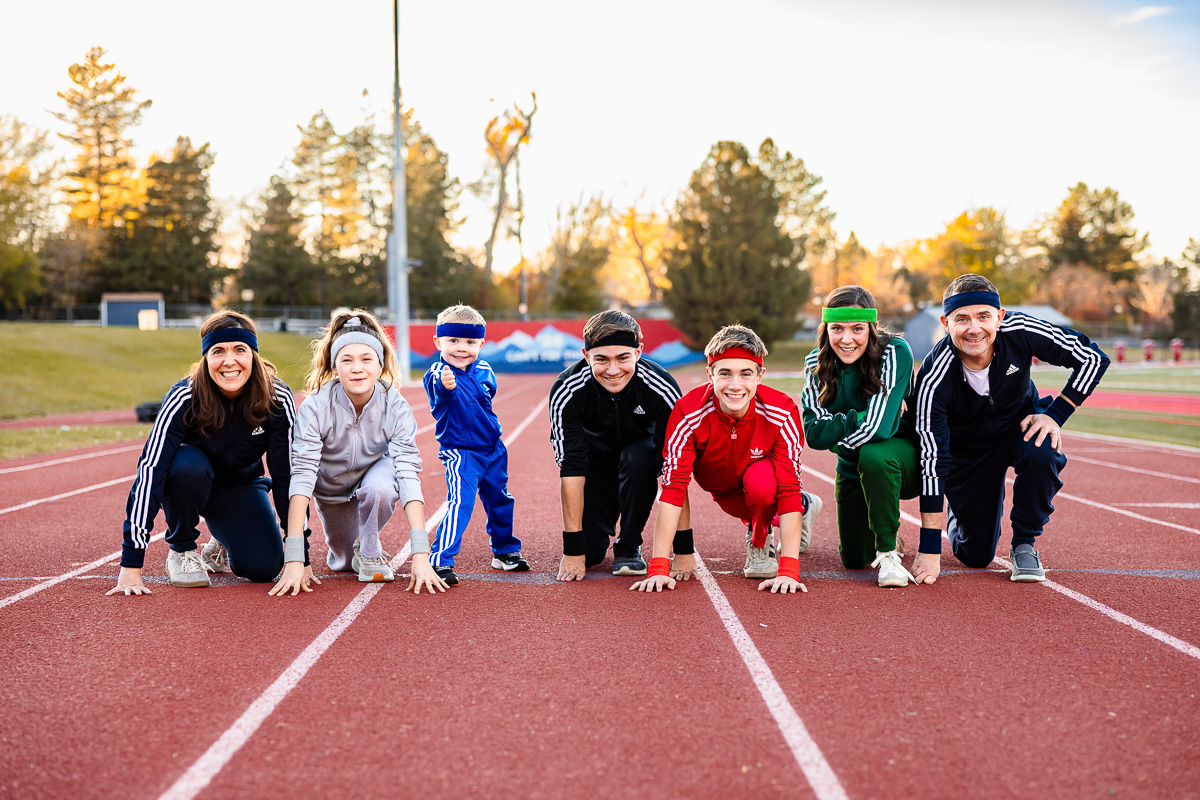 This family always brings the humor and fun! They often show up for their session in Halloween costumes. This year we did nice photos and fun track ones. There’s never a dull moment with this big family. So thankful for these faithful and fun customers! {angelamariecreative.com}